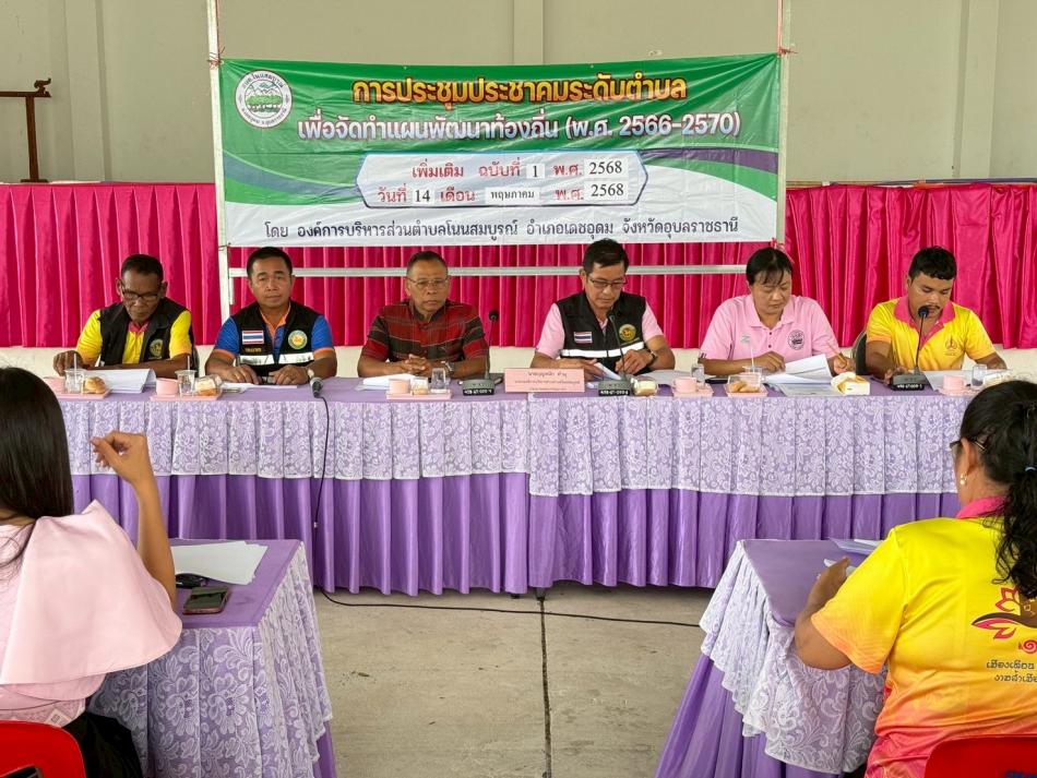 ประชุมคณะกรรมการสนับสนุนการจัดทำแผนพัฒนาองค์การบริหารส่วนตำบลโนนสมบูรณ์เพื่อจัดทำร่างแผนพัฒนาท้องถิ่น (พ.ศ. 2566-2570) เพิ่มเติม ฉบับที่ 1 พ.ศ.2568 [7 พฤษภาคม 2568]