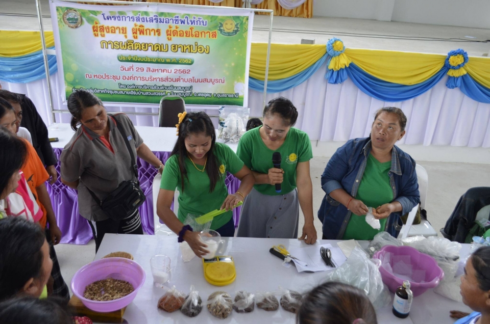 โครงการส่งเสริมอาชีพให้กับ ผู้สูงอายุ ผู้พิการ ผู้ด้อยโอกาส การผลิตยาดม ยาหม่อง จากสมุนไพร ประจำปีงบ [7 สิงหาคม 2562]